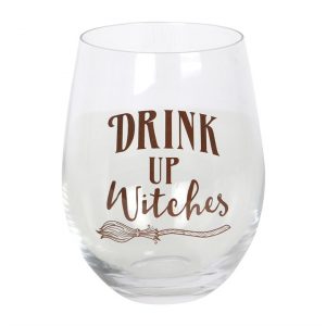Perk up your next coven meeting or girls’ night in with this fun stemless glass that’s perfect for wine, gin or other potions and tonics. Features a whimsical broomstick illustration with ‘Drink up witches’ text. 500ml capacity. Hand wash only.