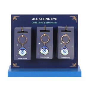 This stunning display includes 24 x All Seeing Eye keyrings which are perfect gifts for loved ones to offer them protection and good luck wherever they go. Also known as the Evil Eye this talisman is a symbol of luck and is believed to deflect misfortune. Each keyring is presented on a blue card along with the meaning. Exclusive to Something Different and part of the ‘All Seeing Eye’ collection.