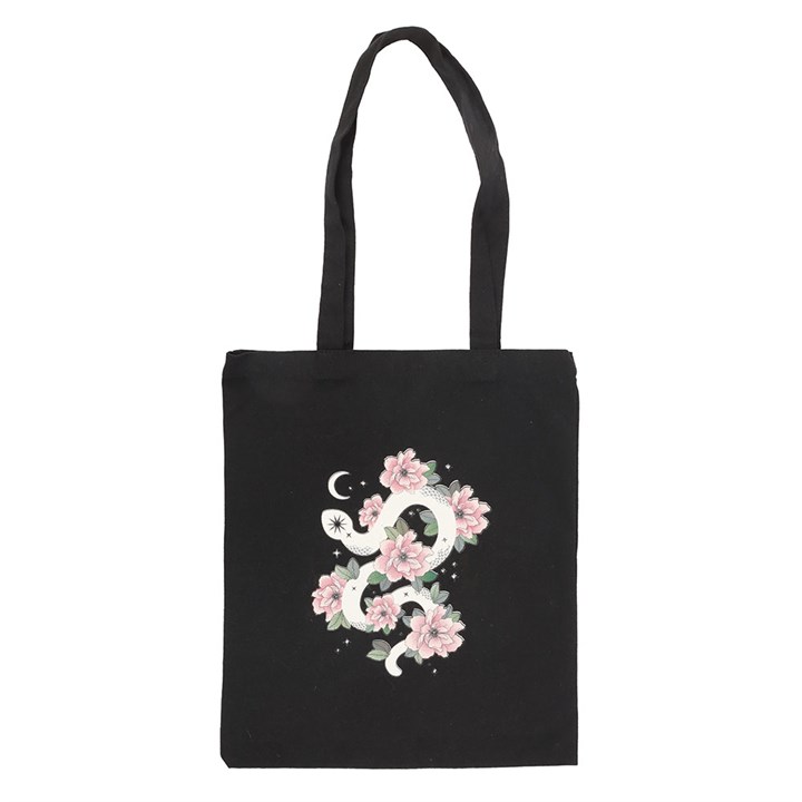 Keep your essentials in tow with this dark and elegant tote bag. Featuring a stunning floral snake graphic, it’s a perfect blend of witchy and boho. 95% polyester, 5% cotton. Hand wash.