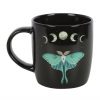 Add a touch of enchantment to your morning cuppa with this dark forest luna moth ceramic mug. This black ceramic mug features a captivating and intricate luna moth design, including moon phases, stars and flowers. 340ml capacity, dishwasher and microwave safe.