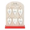 Whether used to show love and support or to give a boost of positivity, these mini heart signs are the perfect way to let someone know you are thinking of them. 6 sentimental phrases include, “Side by side or far apart, good friends are always close to the heart”, “Thank you from the bottom of my heart”, “Home is where the heart is”, “Every love story is wonderful, but ours is my favourite”, “Love you” and “I love you to the stars and back”. Sold in multiples of 24 on a matching countertop display.