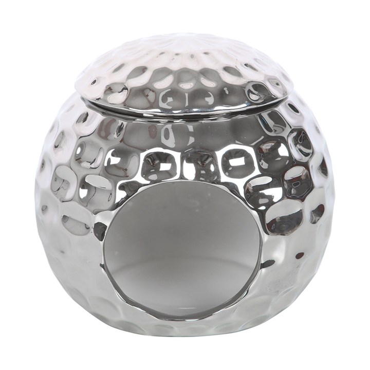 Add a touch of retro sparkle to your space with this silver disco ball shaped oil burner. This dazzling disco ball catches the light beautifully while filling the room with your favourite fragrance. Perfect for adding a fun, groovy vibe to the home. Recommended for use with fragrance oil diluted with water. Always remove the lid whilst in use. Allow to cool completely before handling.