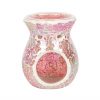 Beautiful small oil burner with a stunning iridescent pink mirrored crackle effect. May also be used as a wax melt burner. This popular item is also available in other oil burner designs and as matching candle holders.Product Dimensions: H11cm x W8.5cm x D8.5cm Packaged Dimensions: H14cm x W11cm x D11cm