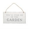 Let visitors know where to find you with this handy hanging sign which reads ‘You’ll find me in the garden’. Hang on the front door before heading out in the garden to work or relax. Created in a shabby chic, white wash design for an understated look.