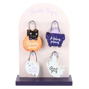 These mini Halloween signs contain no tricks, just treats with their super cute and spooky style. The set contains four different mini signs with 6pcs per design for a total of 24pcs. The set comes with a matching retail display for easy and effective merchandising.
